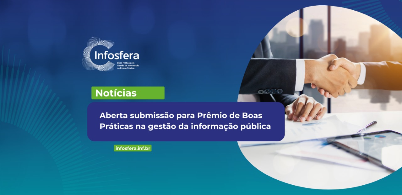 Está aberto o prazo de submissão para o Prêmio Infosfera de Boas Práticas na gestão da informação na esfera pública. Gestores, servidores e equipes da administração pública dos três poderes e das três esferas federativas têm até 30 de setembro para inscrever projetos que demonstrem excelência, inovação e impacto transformador na gestão da informação do setor público brasileiro. Os interessados devem enviar a boa prática por meio da plataforma de submissão disponível na página do evento infosfera.inf.br/infosfera2025/ . Clique aqui para acessar.